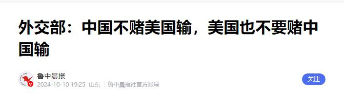 鲁中晨报——-2024年10月10日——外交部:中国不赌美国输,美国也不要赌中国输