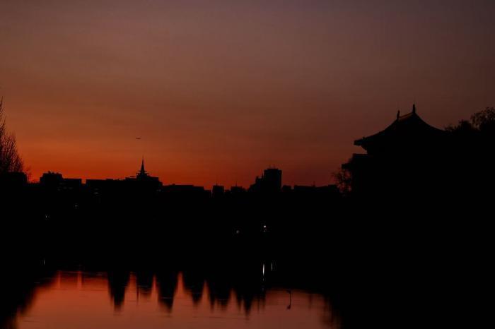 水面倒影与实景相映成趣,勾勒出古都独有的静谧与厚重。