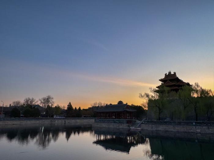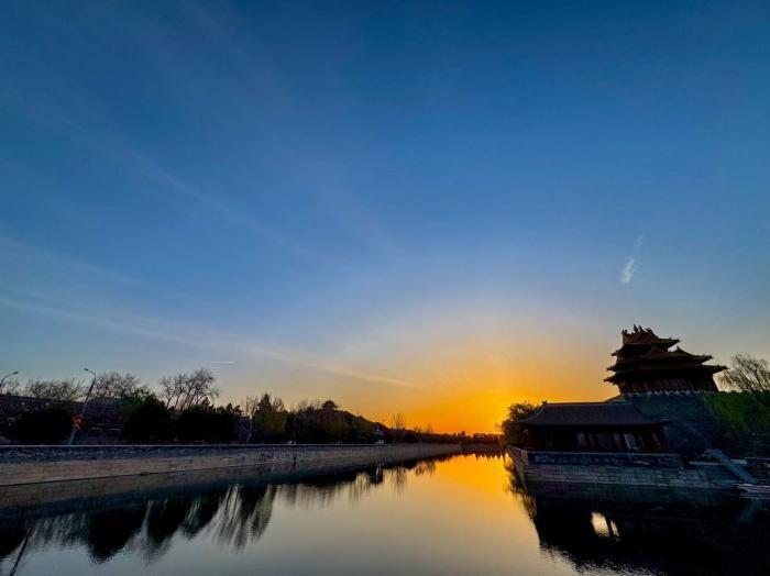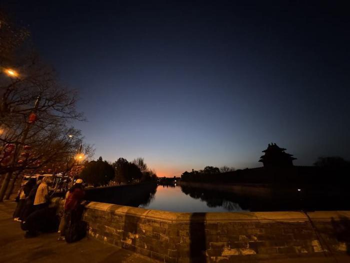 清晨6时许,天色尚未完全透亮,故宫东北角楼外的护城河沿岸已架起不少相机,镜头对准渐次晕染的天际。